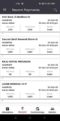 Real Time Cash and Bank Payment registration by salesman at Retailer Store. Retailers get Payment Registration Slip with instant message Notification.